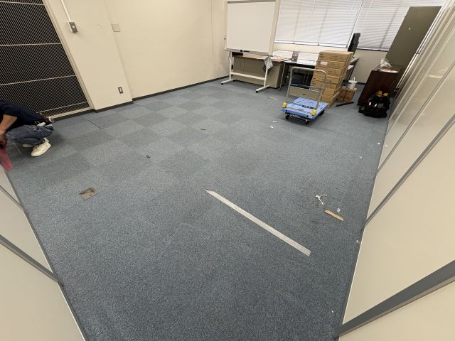 12坪ほどの個室にて、タイルカーペットの貼替工事を行いました。