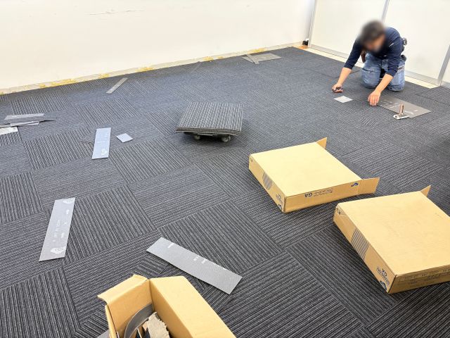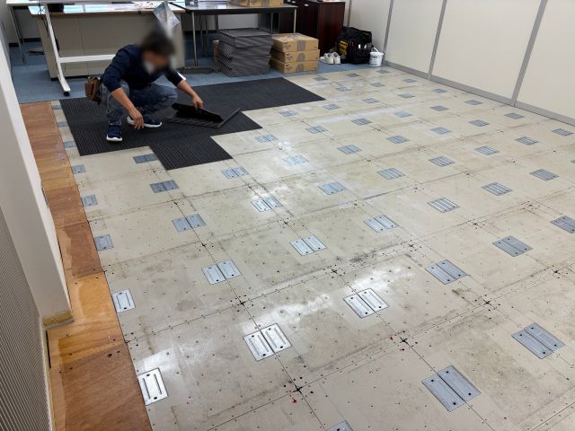 既存の床にはグレーのタイルカーペットが敷かれていました。