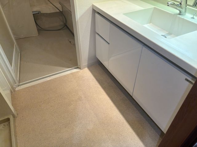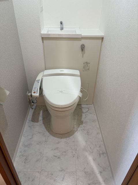 洗面室とトイレにはホワイト系のクッションフロアを選定し、より清潔感がアップしました。